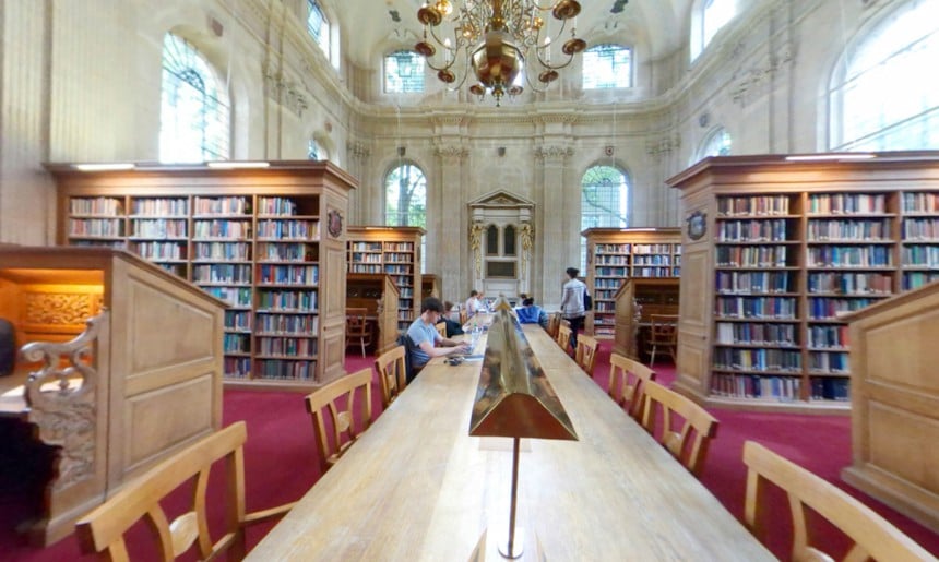 360° views of Lincoln College. These images cover facilities such as the dining hall, library, JCR, chapel, as well as an example of a student room, garden or quad, and the porters’ lodge.